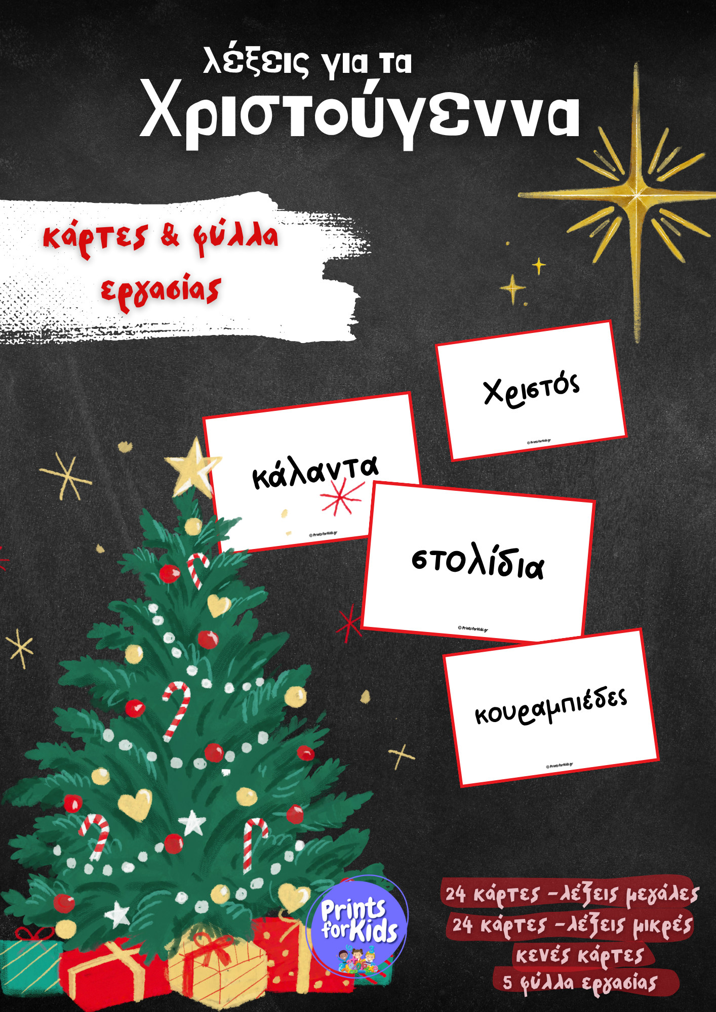 Λέξεις για τα Χριστούγεννα - Κάρτες και φύλλα εργασίας
