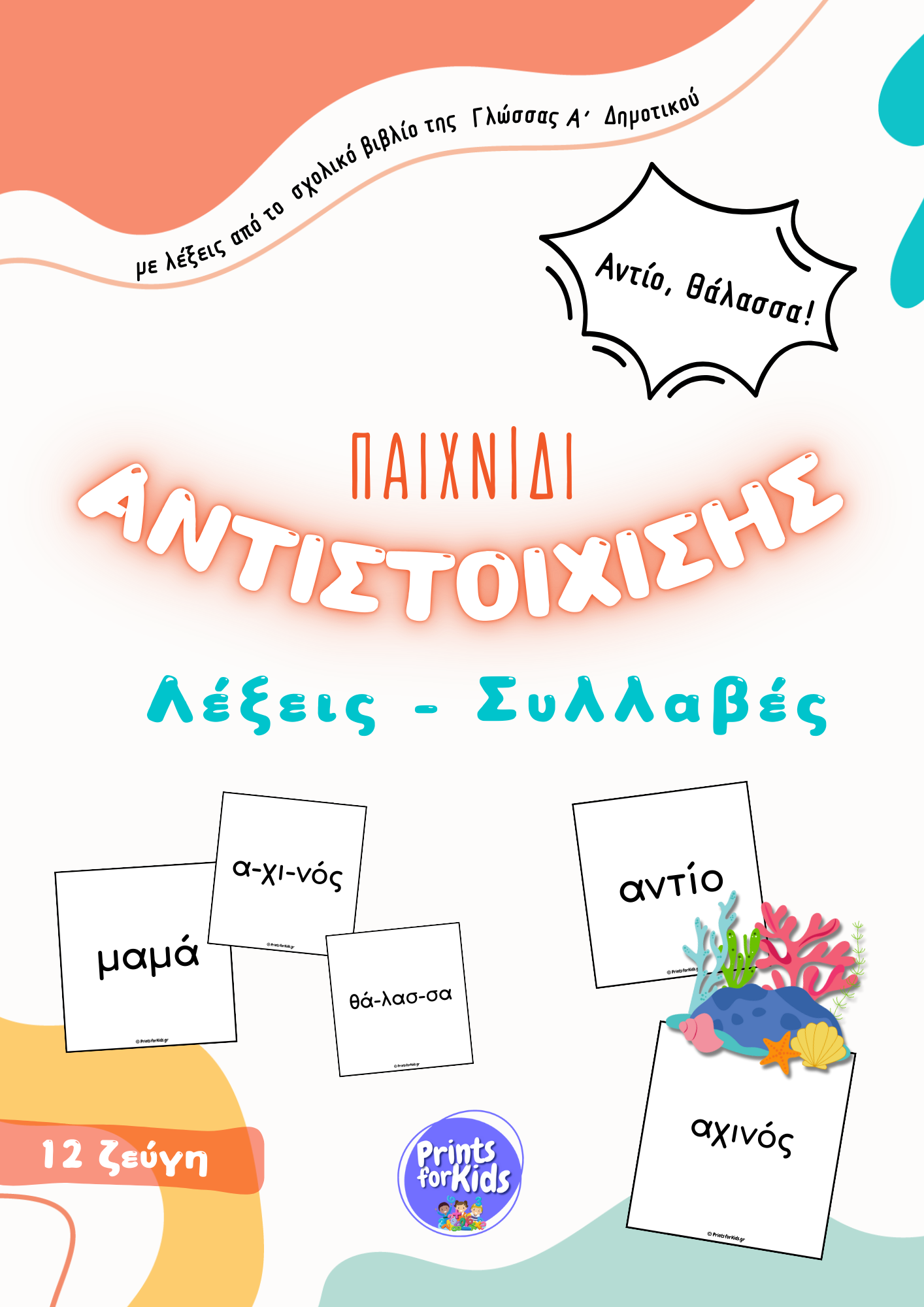 Παιχνίδι αντιστοίχισης - Λέξεις-Συλλαβές - Αντίο, Θάλασσα!