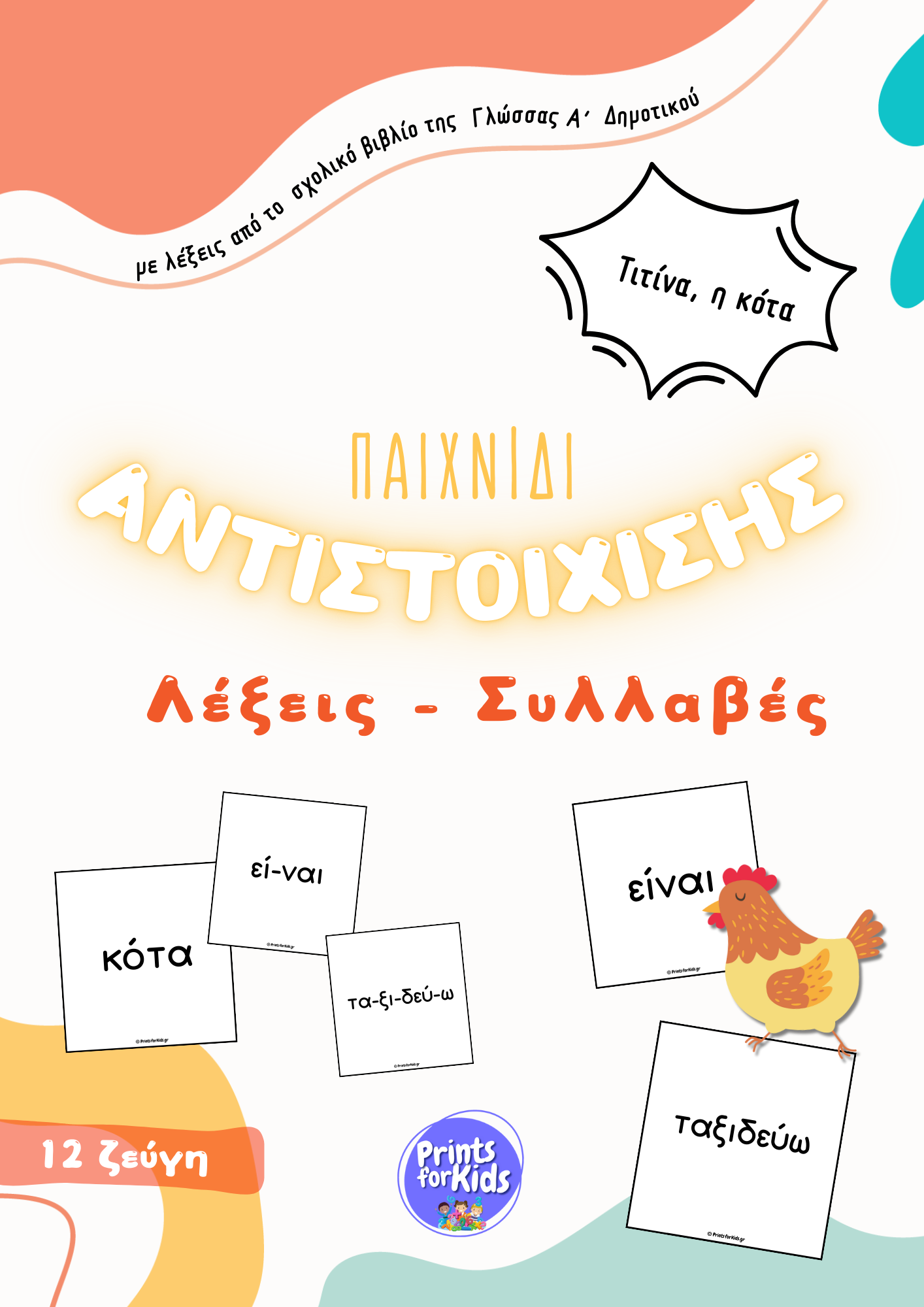 Παιχνίδι αντιστοίχισης - Λέξεις-Συλλαβές - Τιτίνα, η κότα